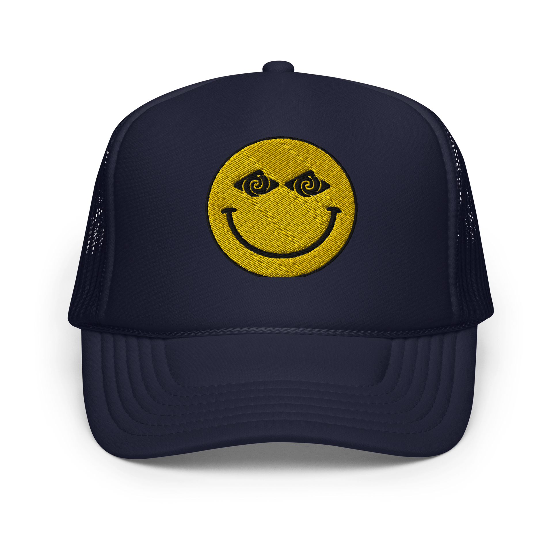 Stand out from the crowd with the Know Yourself Keep Your Smile  foam trucker hat! This head accessory is made with high-quality polyester and foam that guarantees a premium look and feel. The foam trucker hat has an adjustable snap that ensures a comfortable fit, and the mesh back provides great breathability. The matching color braid gives the hat an extra oomph. Style it with your favorite outfit any time of the day.